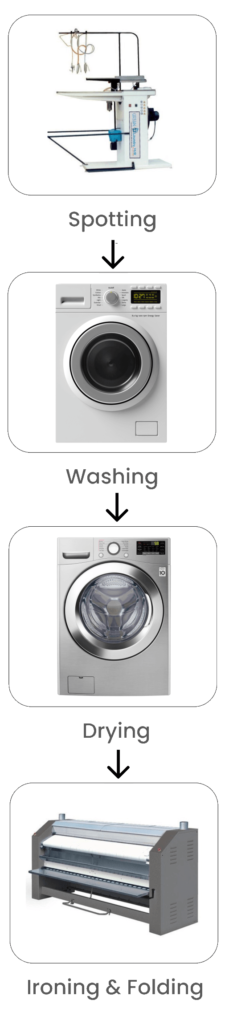 We process the load with a full cycle of Spotting, Washing, Drying, Ironing and folding to give the laundry a fresh feel.